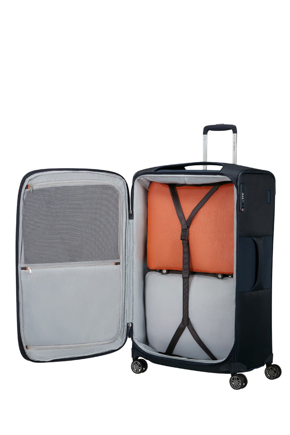 Пакування валізи стане ще простішим завдяки відповідним знімним пакувальним кубам. Вони кріпляться один до одного за допомогою кнопок і легко переносяться за ручку.