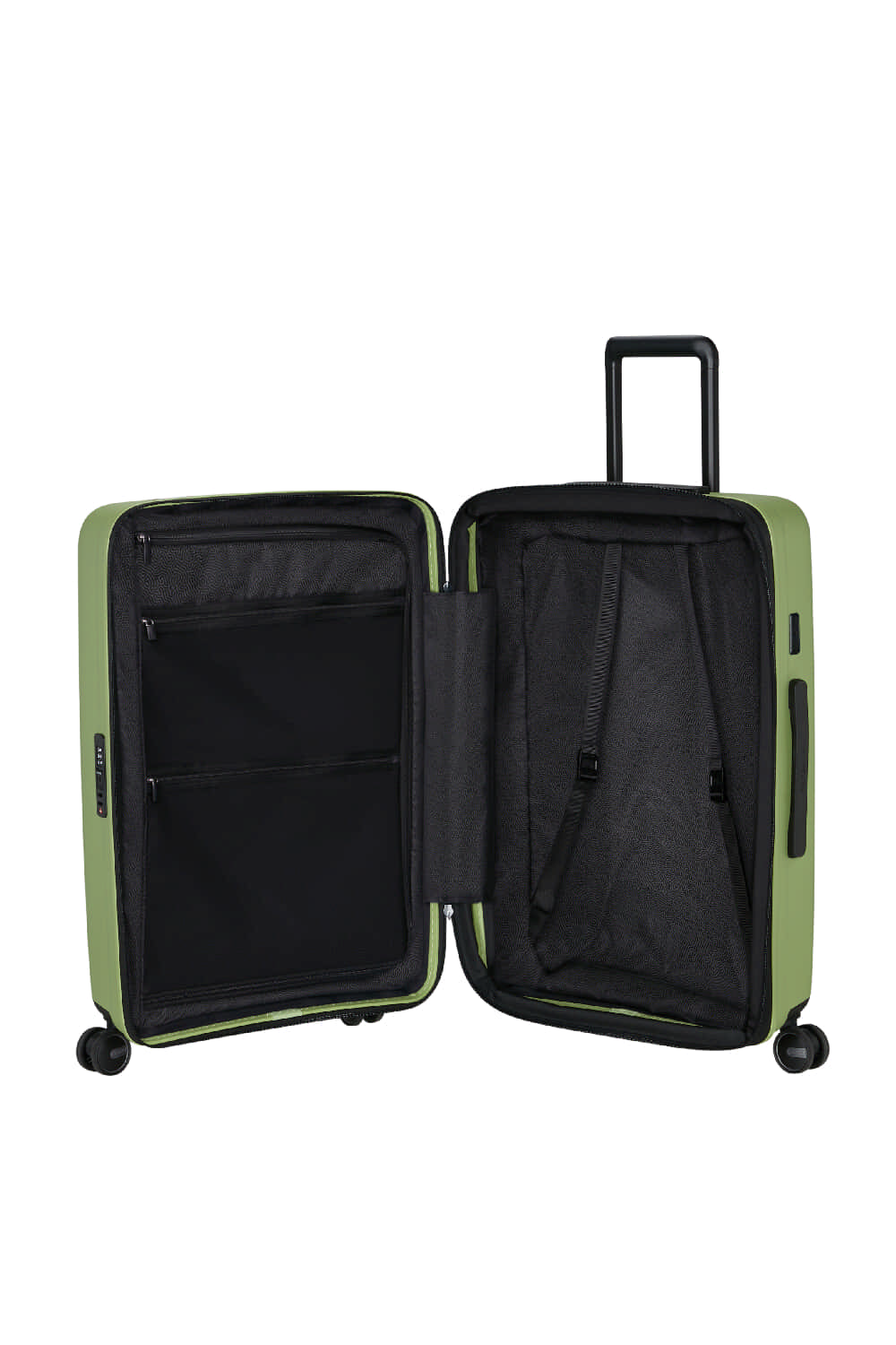 Внутрішній простір валізи зручно організований за рахунок фіксованої перегородки з двома відділеннями на блискавці зверху та пакувальних ременів, які регулюються по висоті. Підкладка повністю знімна та може бути знята вручну.