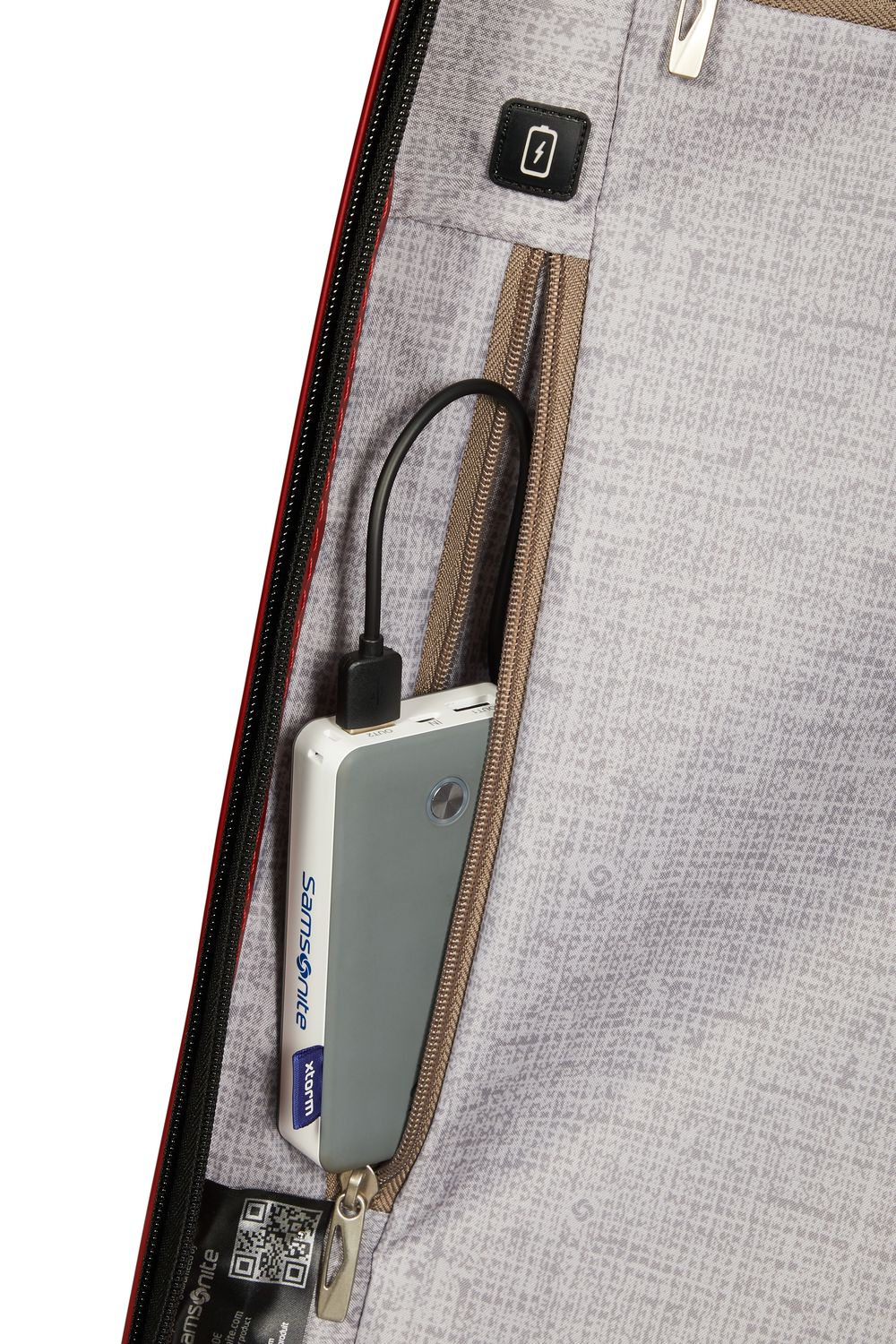 - USB-порт и карман для повербанка внутри;