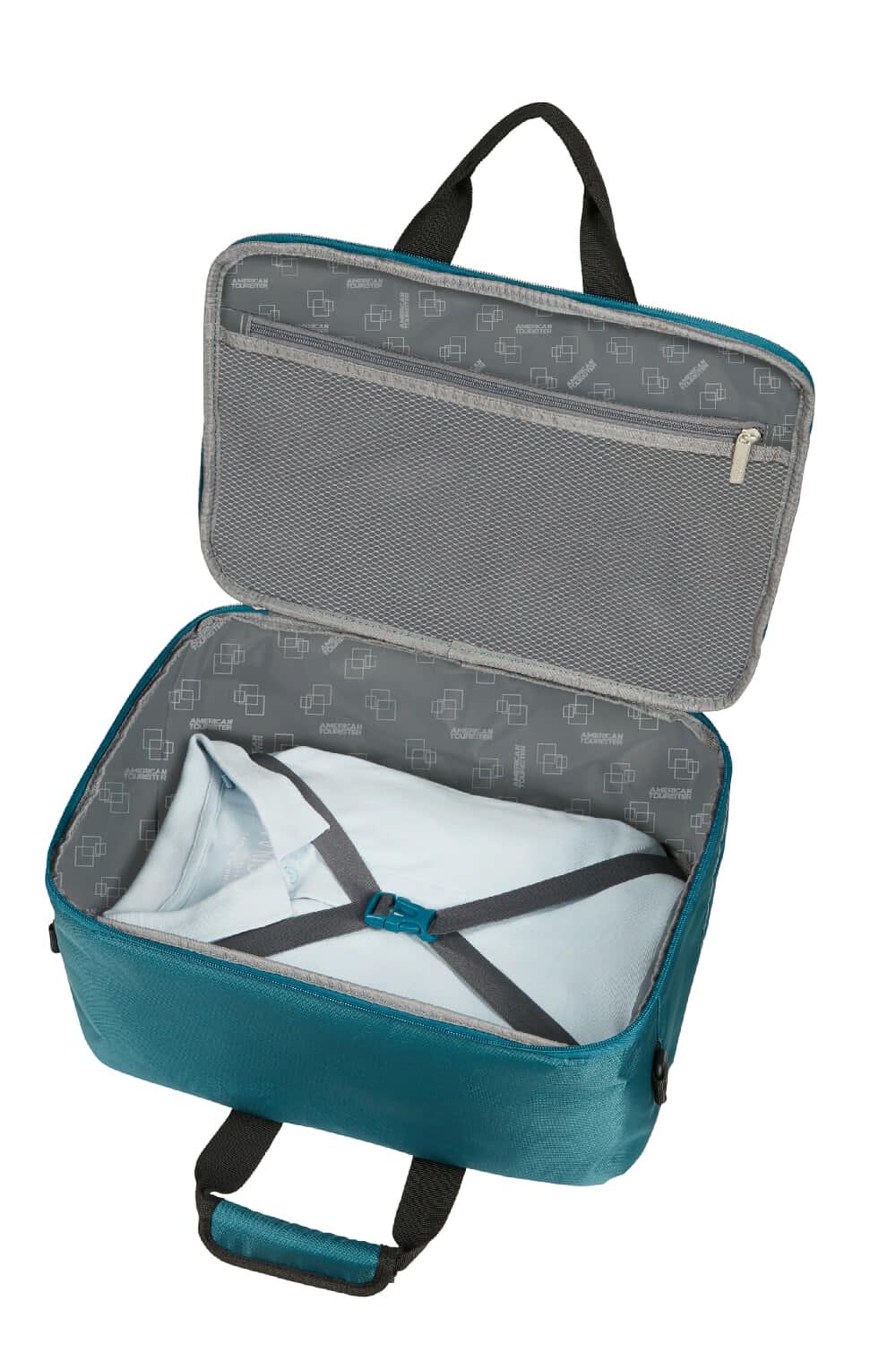 Відділення для одягу з перехресними фіксуючими ременями.